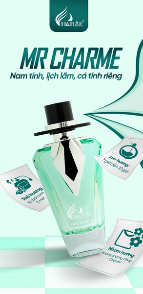 Mùi hương cuốn hút và dễ gây thiện cảm bởi sự cởi mở và vừa vặn của các nốt hương. Tất cả kiến tạo nên hình tượng nam giới trẻ trung, chịu chơi, chơi đẹp, hào hoa, tinh tế. MR.CHARME có lẽ là hương thơm “nguy hiểm” và đáng khao khát nhất đối với rất nhiều người yêu hương. Bởi một khi đã chạm đến và làm quen với MR.CHARME các anh sẽ rất khó yêu lại những mùi hương mình từng có và yêu thêm được gì khác ngoài những mùi hương MR.CHARME.